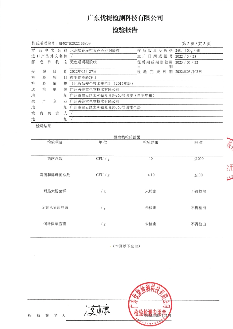 品名:库拉索芦荟舒润凝胶