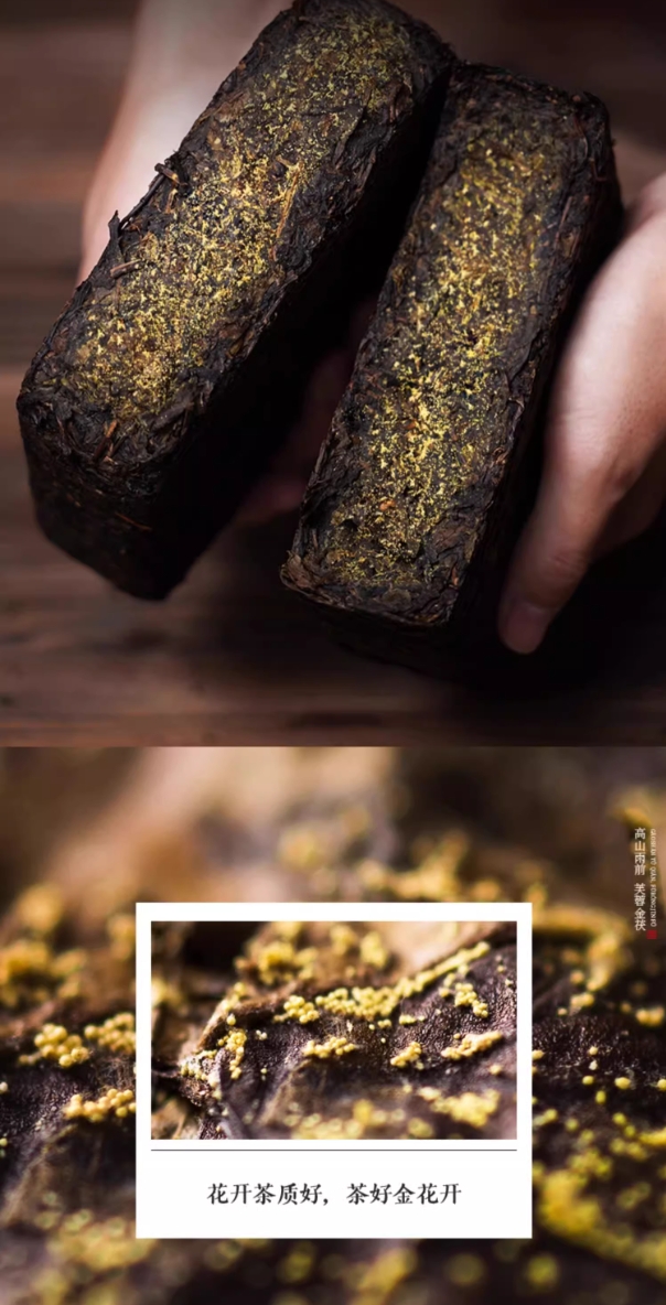 安化黑茶湖南安化黑茶金花茯砖黑茶1斤(500g)